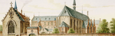 De Mechelse minderbroeders bouwden in de loop der jaren een uitgebreid kloostercomplex in het centrum van de stad, vlakbij de Sint-Romboutskerk. Het omvatte naast de traditionele kloostergebouwen en ommuurde tuinen ook een ruime kerk. Het klooster werd na de Franse revolutie gebruikt als kazerne en de kerk als hooimagazijn voor de legerpaarden. Nu maakt ze als exporuimte en concertzaal deel uit van het Cultuurcentrum Mechelen.