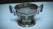 Het is een schaaltje van gebakken aarde, rijkelijk versierd met zilverwerk dat later werd aangebracht. Is dit mogelijk wél een authentiek Italiaanse kommetje uit de tijd van Franciscus?